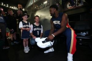 体育资讯10月6日讯 在澳大利亚进行季前赛的锡安,在比赛中将自己亲穿球鞋签名送给了一位小球迷Theodore。Theodore刚刚战胜了癌症。