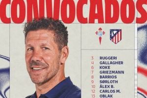 体育资讯10月5日讯 西甲第8轮比赛,马竞将在客场对阵塞尔塔,马竞公布了此役的球员名单。穆索身体不适缺席,吉梅内斯、阿尔马达、卡尔多索继续伤缺。